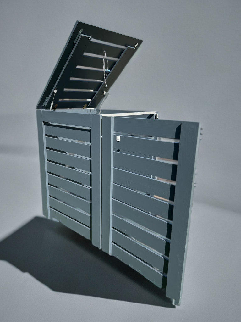 Cu un design modern și finisaje atent lucrate, cutiile noastre oferă o soluție practică și estetică pentru ascunderea tomberoanelor, echipamentelor tehnice sau altor elemente din curte.